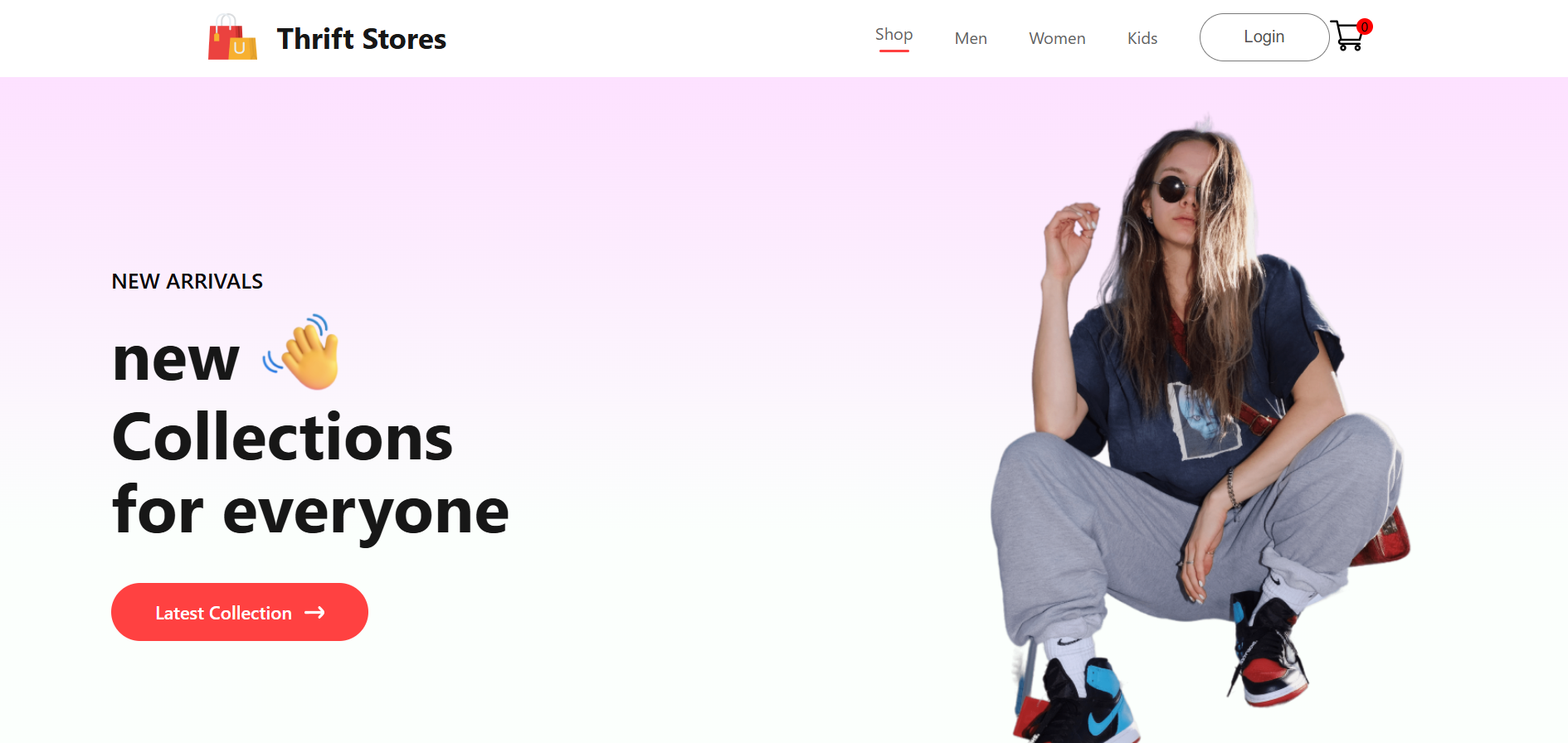 React.js web application designed for showcasing and managing thrift fashion collections, built with a clean user interface and responsive design principles.